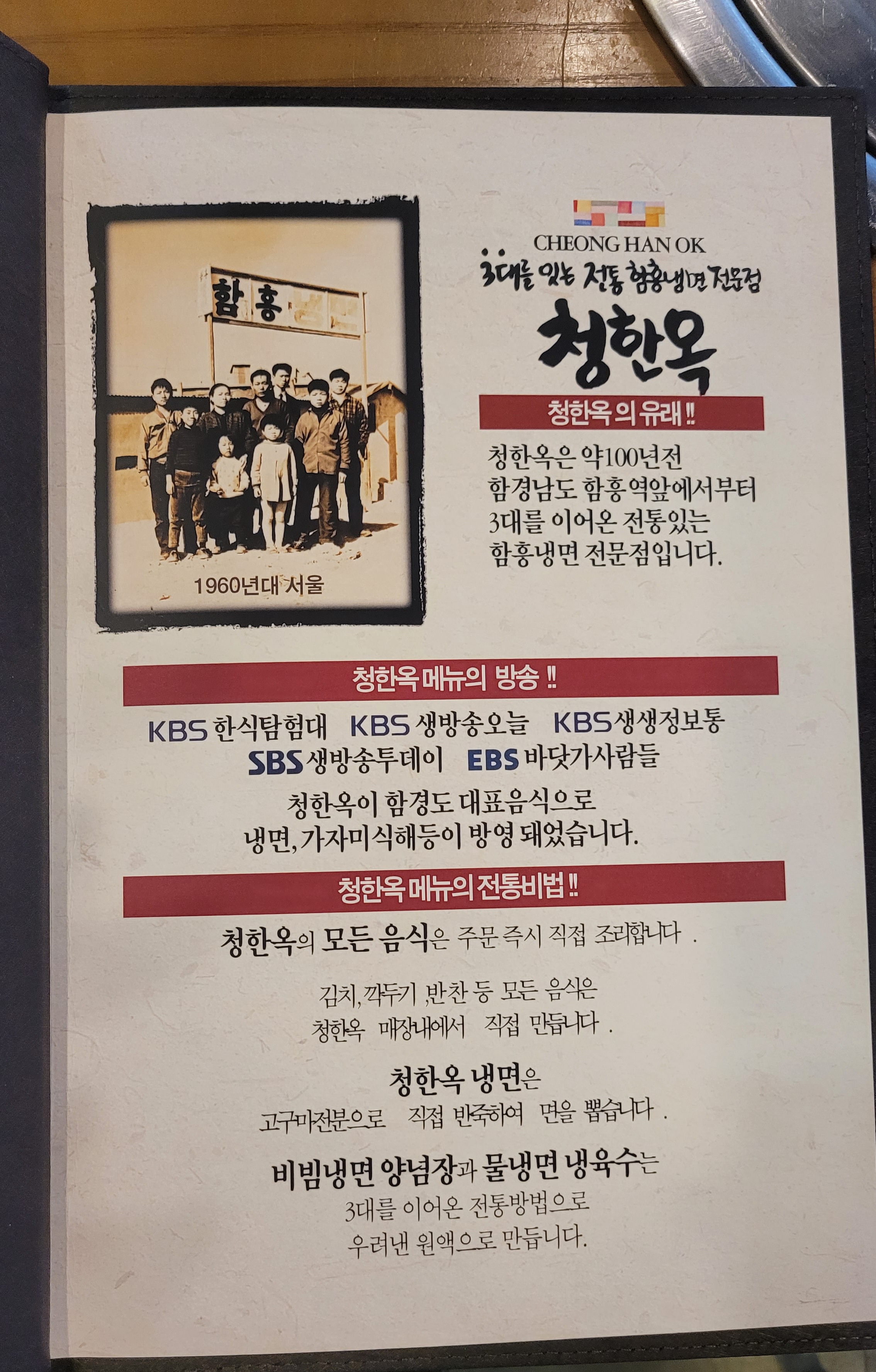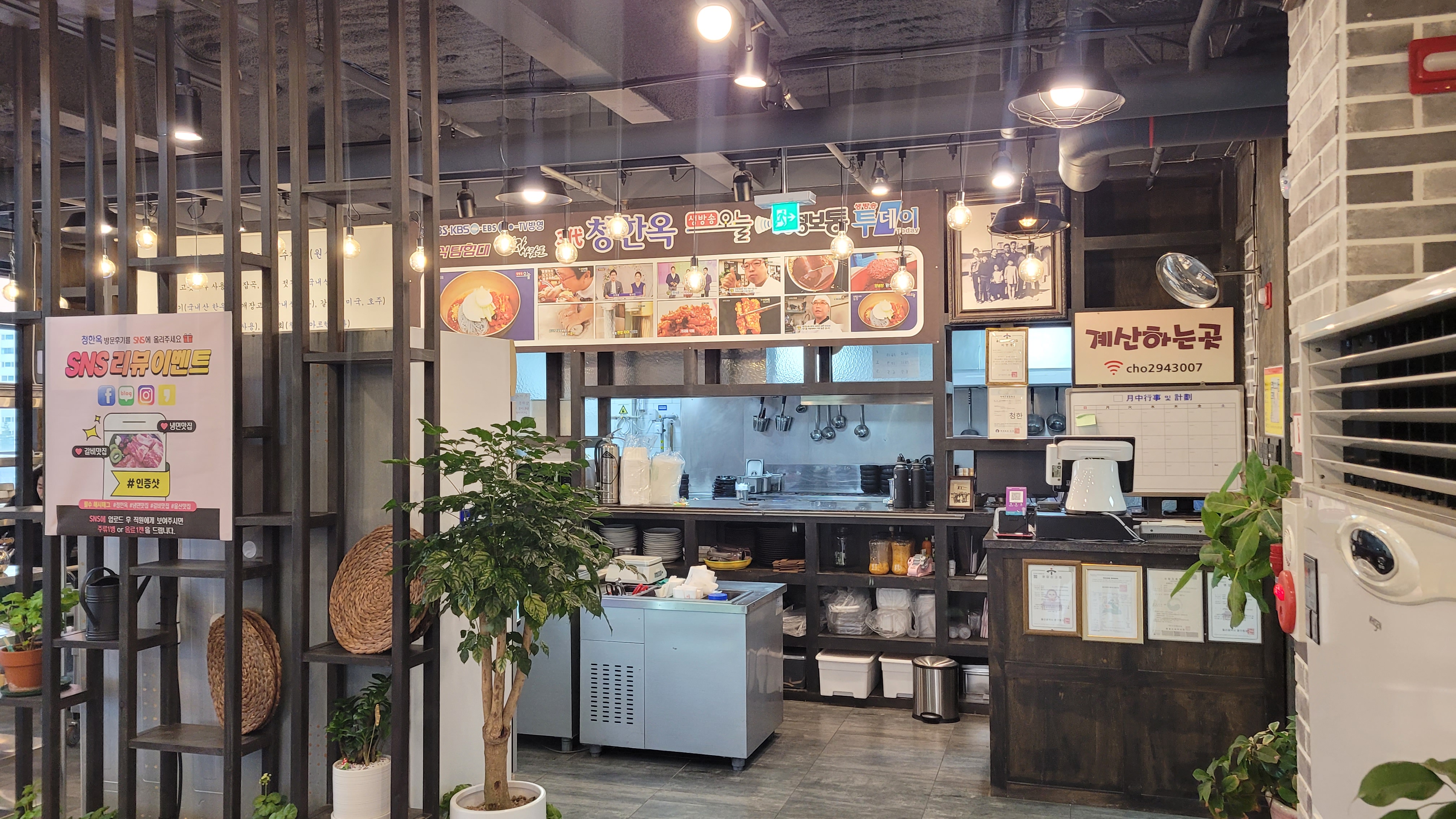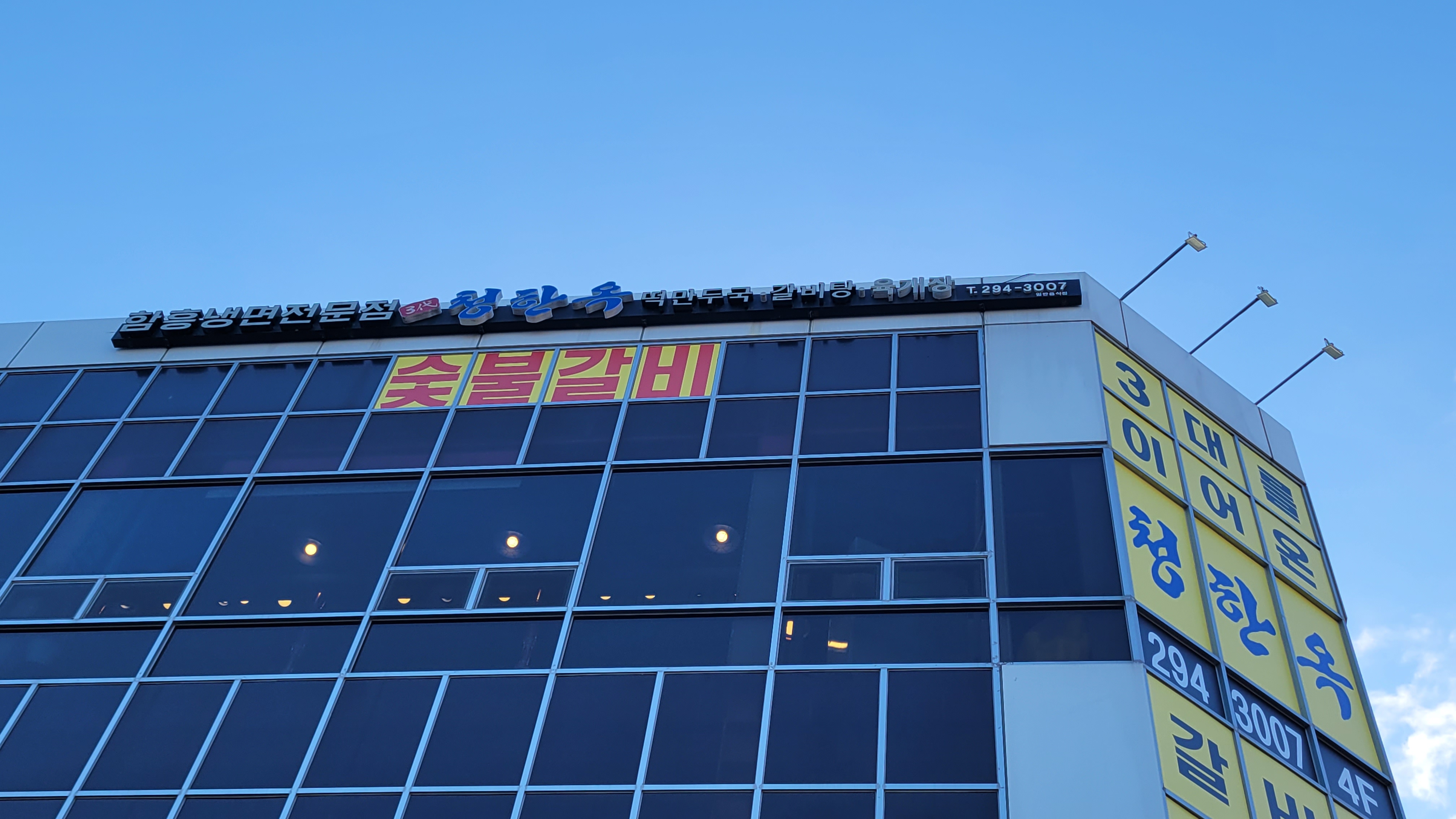 간판에도 큼지막하게 써있듯이 울산 냉면 숯불갈비 청한옥은 원래 근처 다른 건물에 있었는데 더 큰 건물로 확장이전을 했다.