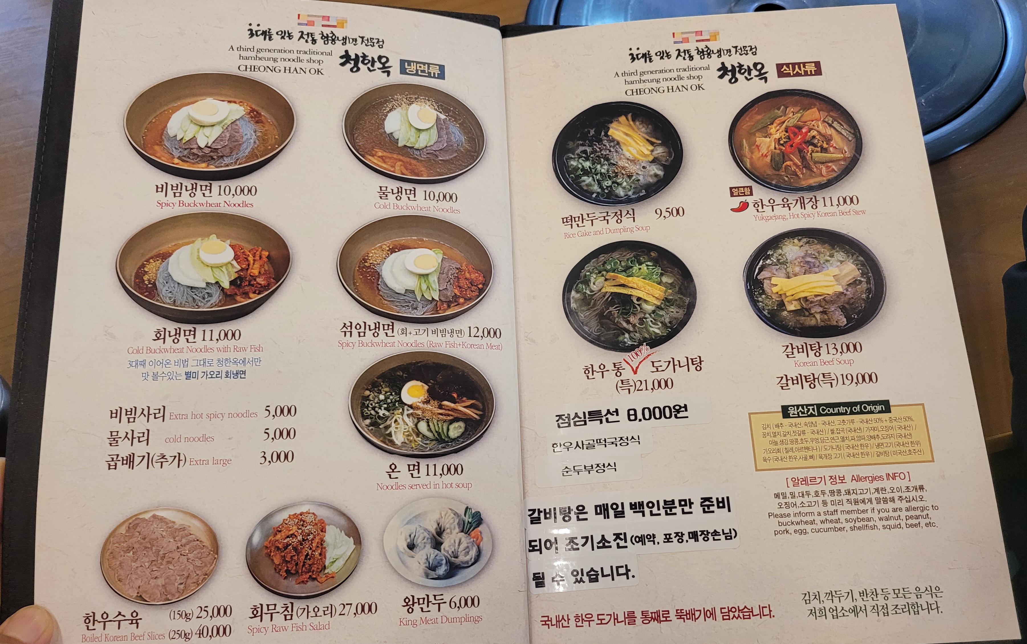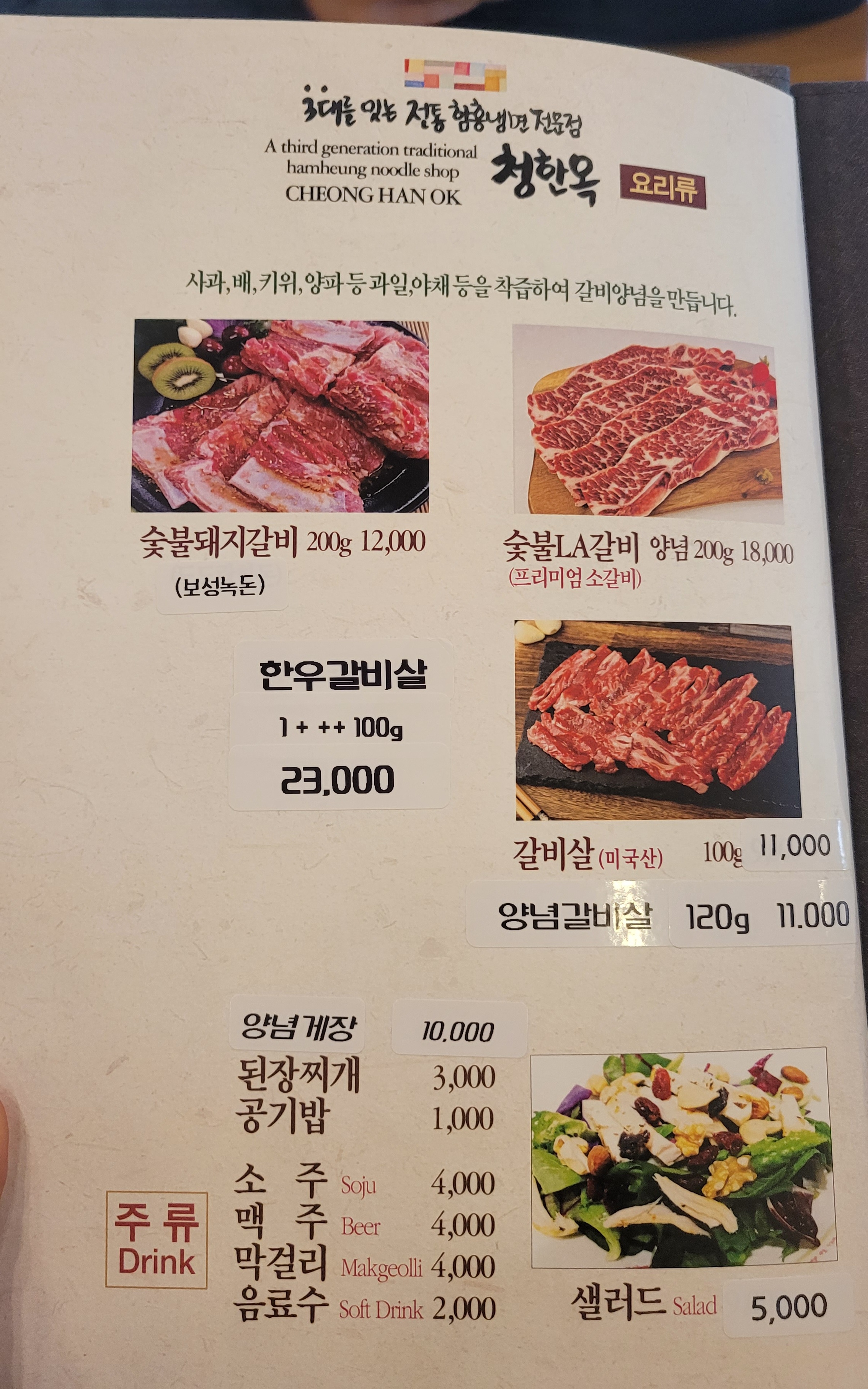 울산 냉면 숯불갈비 청한옥의 메뉴를 살펴보자~~