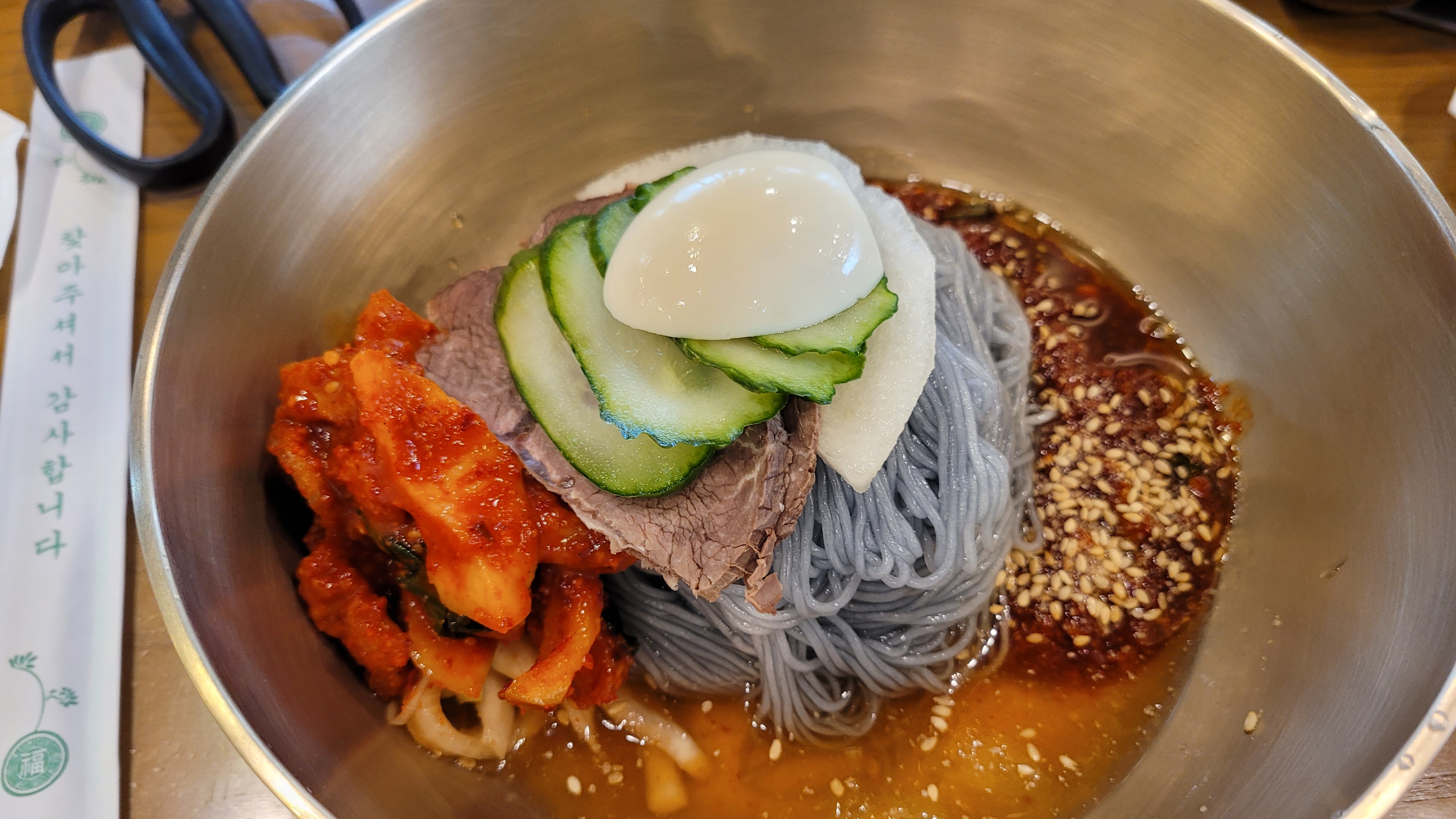 냉면은 원래 겨울음식 이란다. 그래서 그런지 면이 탱글탱글하고 입안으로 전해지는 재료들은 신선함이 입안가득 전해졌다! 여름에 먹었을 때 보다 1.5배 맛있다.